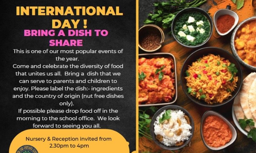 Bring a dish to share with other parents on 21st November 2025 2.30pm to 4pm